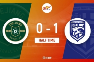 体育资讯7月27日讯 中超第18轮,浙江坐镇主场杭州黄龙体育中心迎战武汉三镇。上半场,王钰栋包抄破门被吹,绍尔建功。半场战罢,浙江暂0-1武汉三镇。